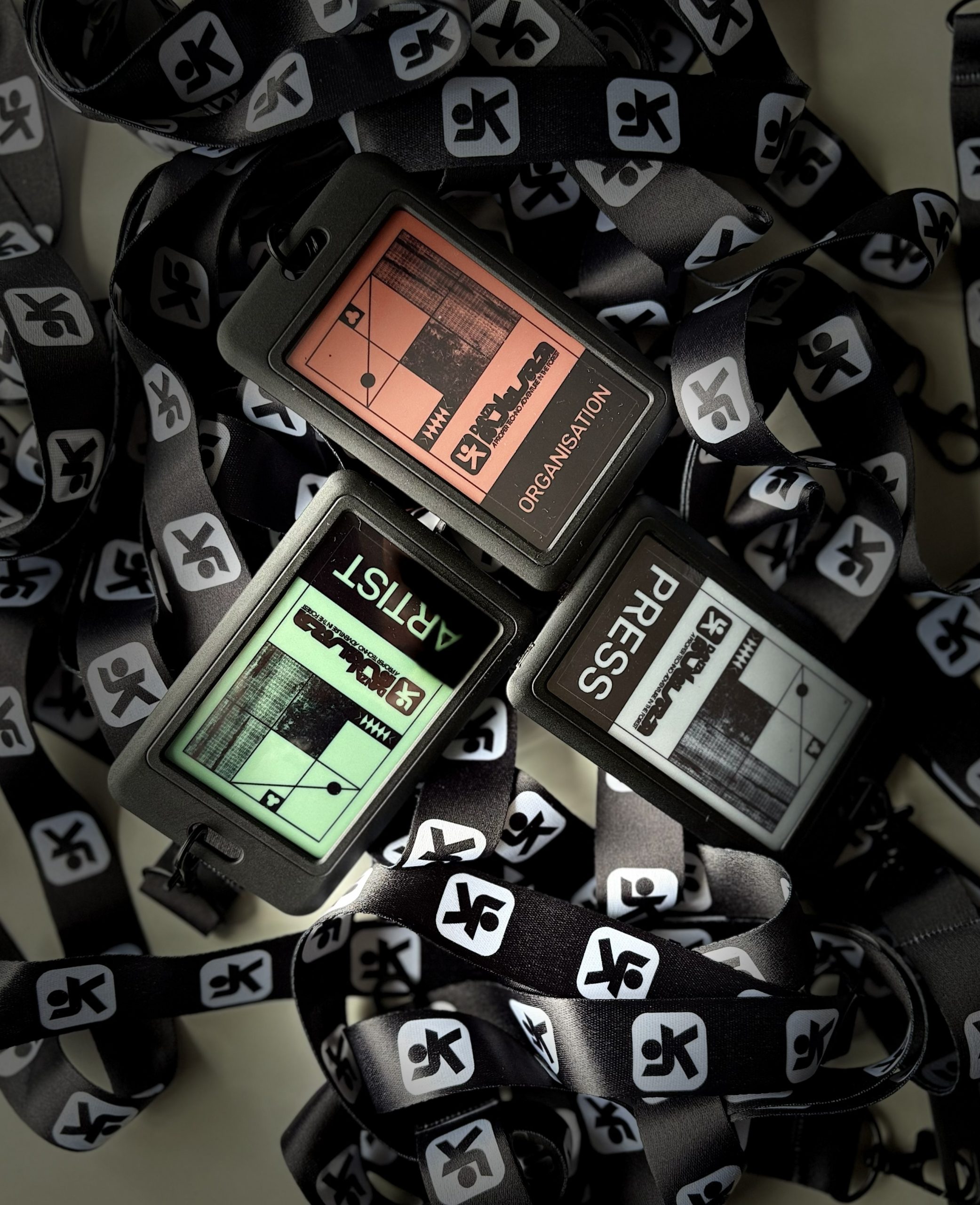 Produjimos acreditaciones en PVC sublimado para artistas, organización y equipo, personalizadas también con DTF UV, junto a fundas y acabados cuidados al detalle. Diseñamos pulseras de acceso en full sublimación con cierre de seguridad, una camiseta limited edition post festival y una chaqueta polar ecorresponsable como edición especial de invierno.