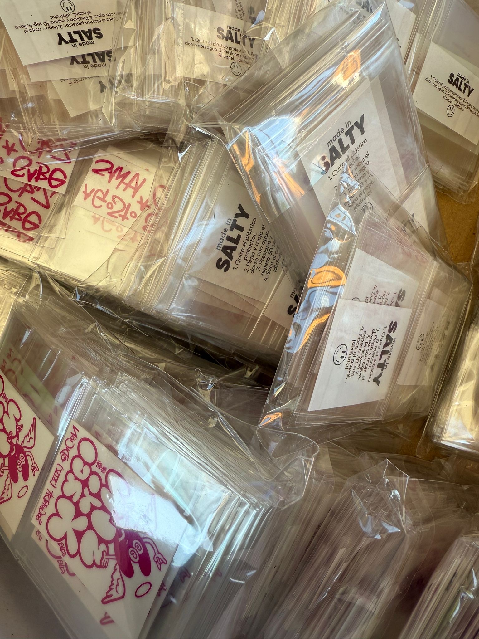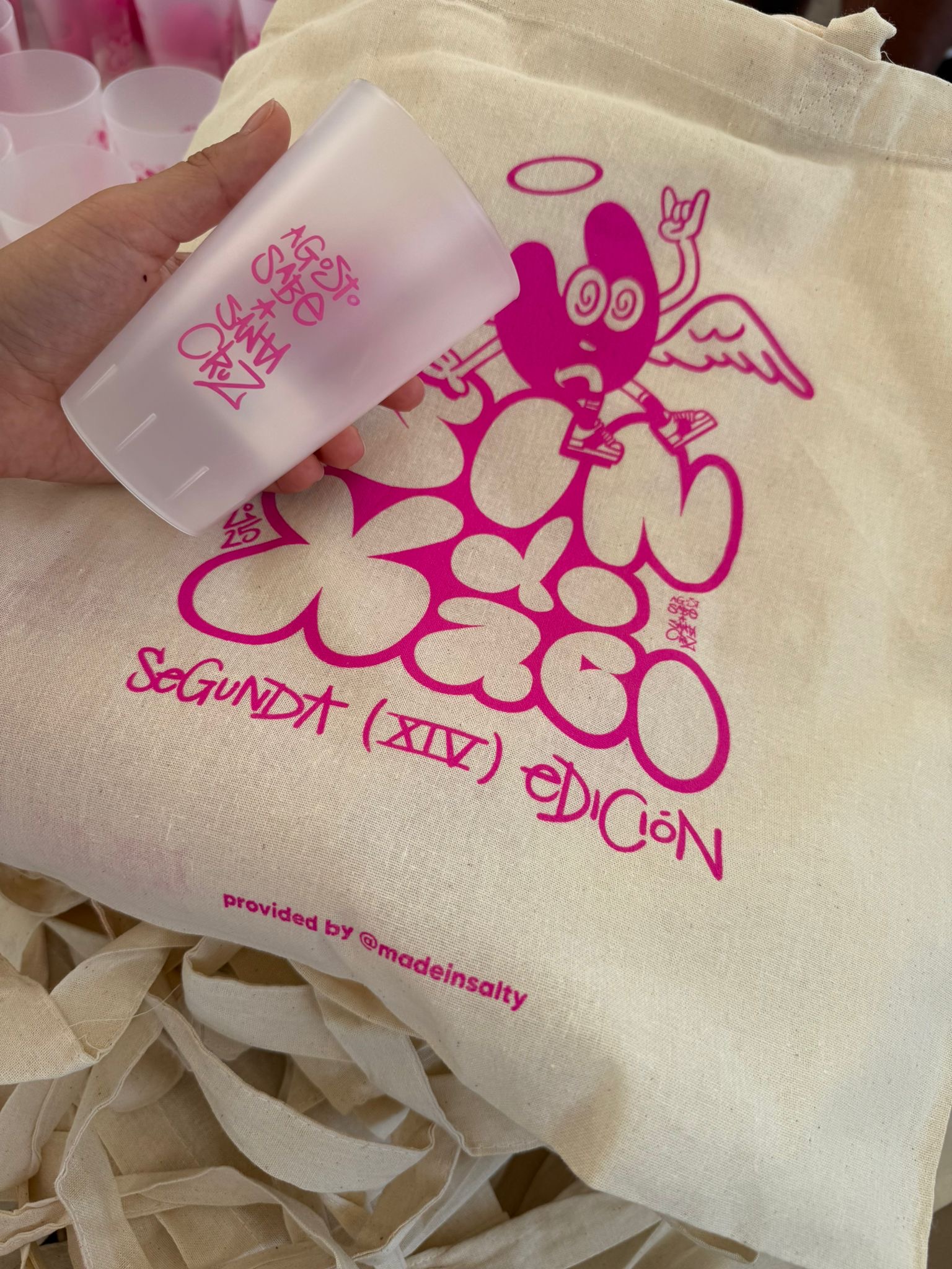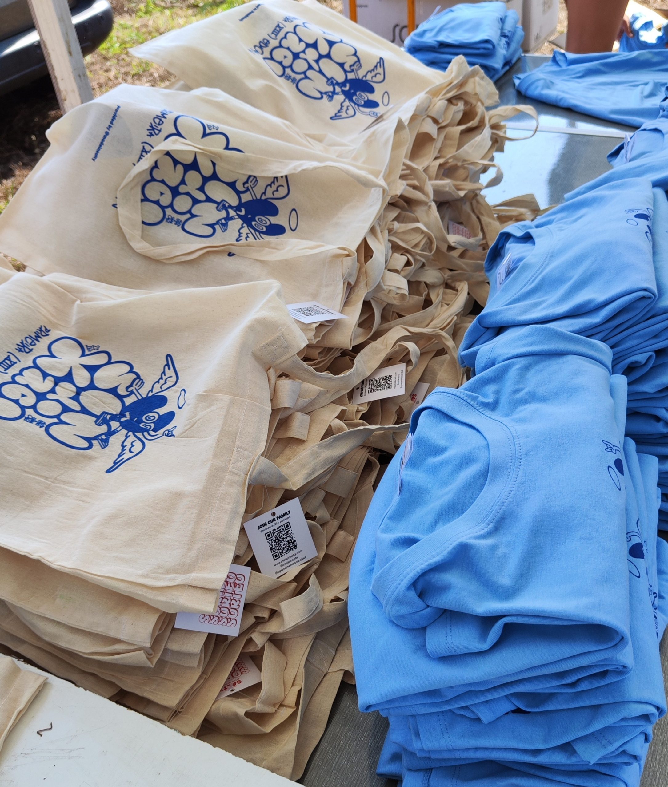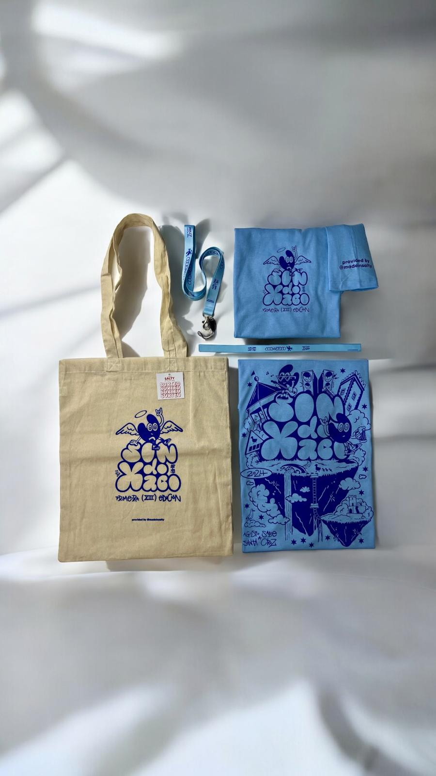 En la primera edición produjimos tote bag, camiseta, lanyard y pulsera. En la segunda, repetimos fórmula afinando detalles y añadiendo la guinda del pastel: tattoos temporales.